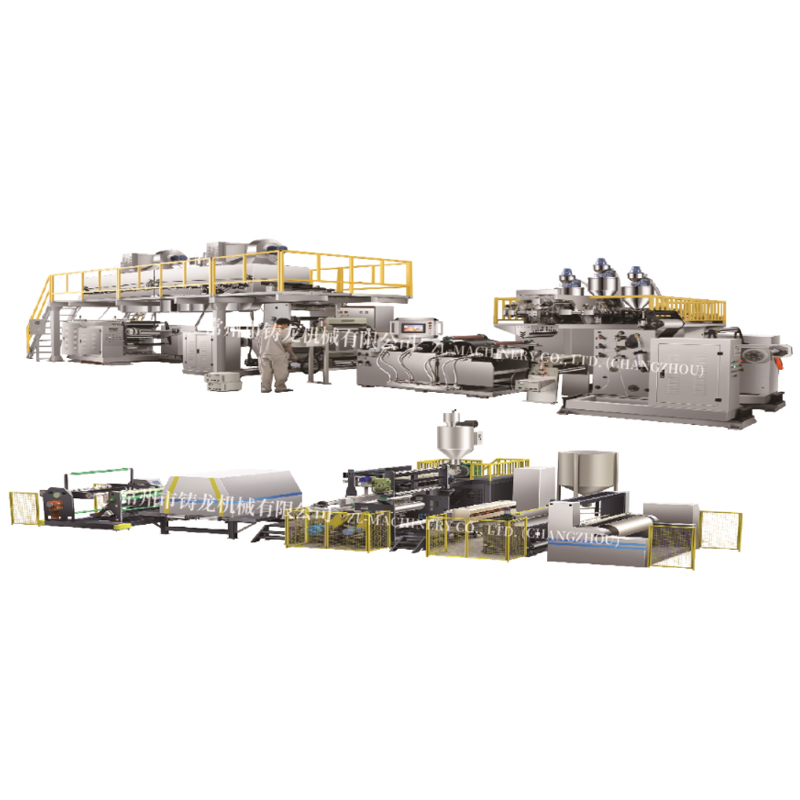 鑄龍ZLX-LM擠出淋膜復合機組系列,利用PE/EVA/PP/TPU/POE等熱塑材料的擠出工藝,對基材進(jìn)行單/雙面覆膜或多層復合,形成具有多種功能的復合制品。該系列設備擁有多種模塊化結構,通過(guò)模塊組合,可以實(shí)現低速、中速、高速、超薄、超高克重淋膜復合功能,適用淋膜基材涵蓋薄膜、無(wú)紡布、珍珠棉、發(fā)泡卷材、紙、紡織品、編織布、針刺布、水刺布、網(wǎng)格布、功能隔膜、金屬箔、鍍鋁膜等。通過(guò)單機、雙機、多機以及單層/共擠、預熱、預涂、復合等功能選配,可以滿(mǎn)足食品、外包裝、裝飾品、建材、農業(yè)、光電、車(chē)船航天功能材料等領(lǐng)域的廣泛需求。